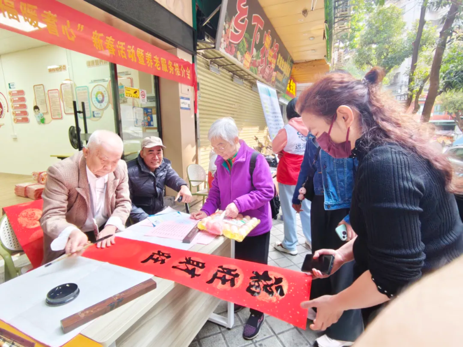 1月27日、28日,广州中远海运健康管理有限公司(以下简称“远海健康”)昌岗街颐康中心在跃进北和细岗东颐康站分别开展“挥春送福暖耆心”新春活动暨养老服务推介会,把新春祝福与优质养老服务送到社区长者身边。 活动现场墨香四溢,书法爱好者挥毫泼墨,为社区老人书写饱含祝福的春联,红纸翻飞、笔墨凝情,一副副饱蘸墨香、承载祝福的春联跃然纸上。老人们手捧“私人定制”的春联,笑脸盈盈,现场欢声笑语不断,年味浓郁、暖意融融。在传递新春祝福的同时,中心工作人员通过发放宣传册、现场讲解等多种形式重点向社区老人及居民推介昌岗街颐康中心的爱心配餐、上门助洁、医疗康复等服务项目。 此次活动不仅为社区长者送上了浓浓的新春年味与真挚关怀,让老人们切实感受到远海健康的暖心陪伴,更成功搭建起社区养老服务宣传与沟通的便民桥梁,让更多长者知晓触手可及的优质养老服务。下一步,远海健康昌岗街颐康中心将持续深耕社区养老服务领域,把暖心服务落到实处,用心守护社区长者的幸福晚年。 | |||||||